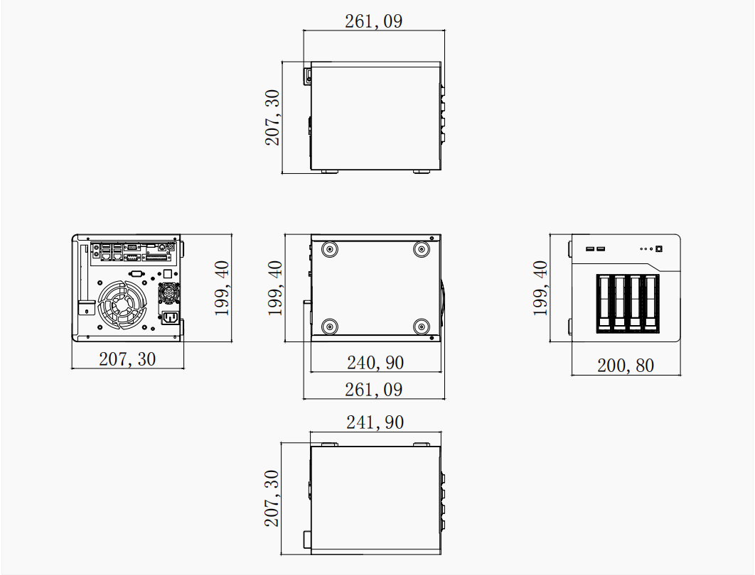 硬 盘:支持4个3.5”和1个2.5”硬盘,内部可扩展1个SSD