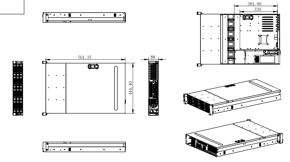 产品尺寸:W482mm*L710mm*H88mm(含挂耳W482mm*L710mm*H88mm)